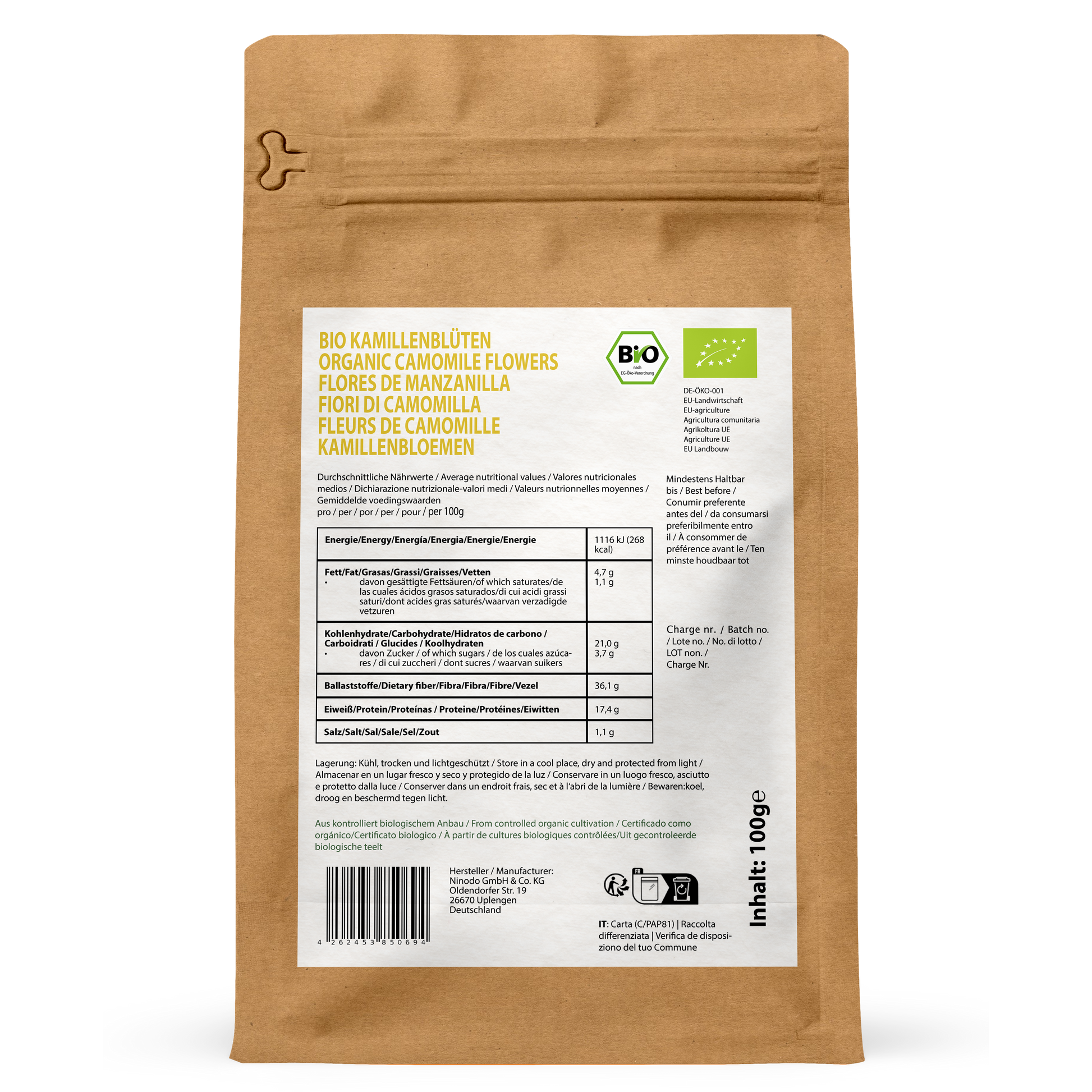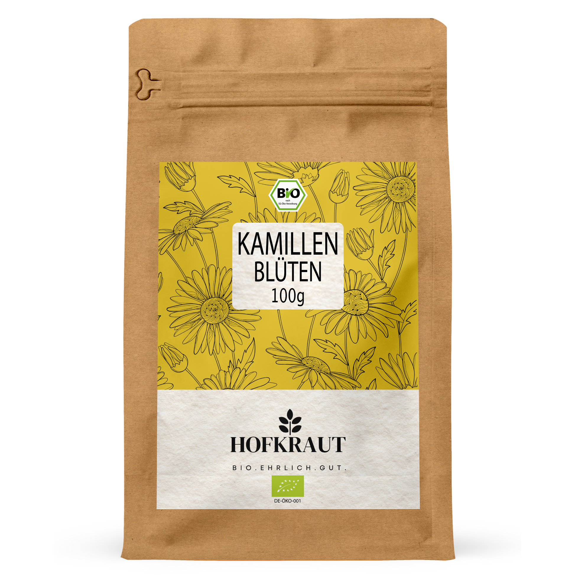 Unsere Kamillenblüten sind frei von künstlichen Zusätzen und werden in einer umweltfreundlichen Verpackung geliefert, die Frische und Aroma optimal bewahrt.