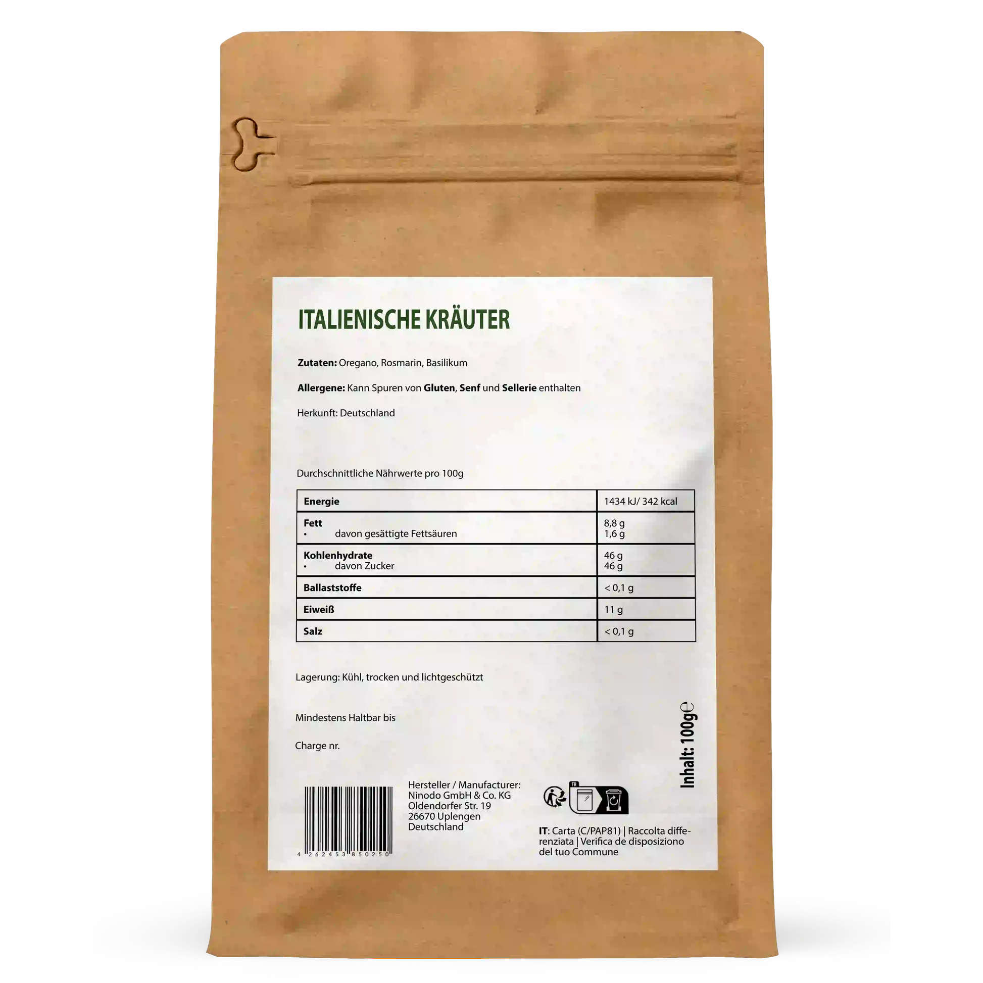 Die wiederverschließbare Verpackung hält die Frische der Kräuter bewahrt. Halte diese aromatische Mischung griffbereit in deiner Küche und verleihe deinen Gerichten im Handumdrehen einen Hauch von italienischem Flair. Entdecke mit unserer italienischen Kräutermischung die Leidenschaft und den Genuss der mediterranen Küche – direkt in deinem Zuhause!