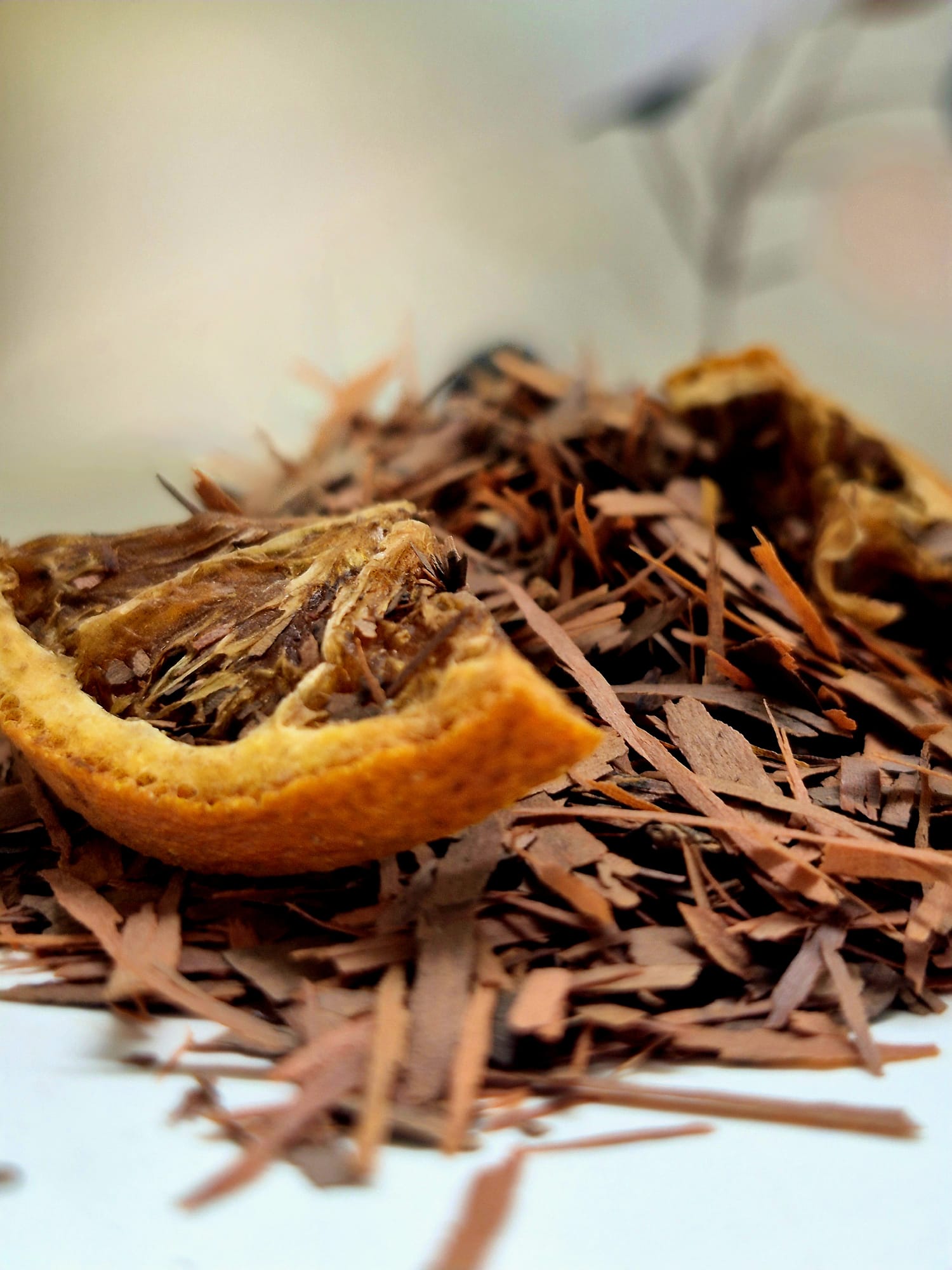 Lapacho, Orangenspalten, Orangenschalen, Aroma.
